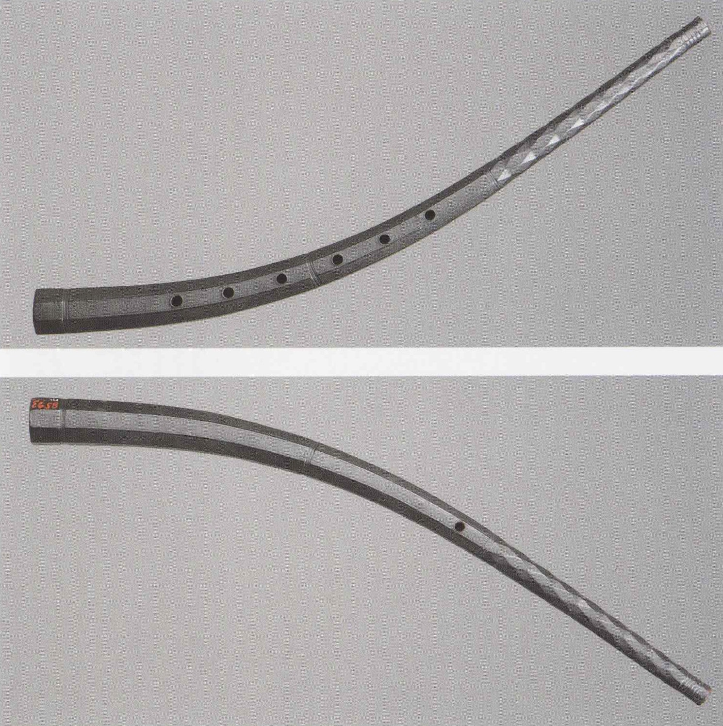 Right-curved soprano cornetto with a very curious shrinking at the lower end of its bore.